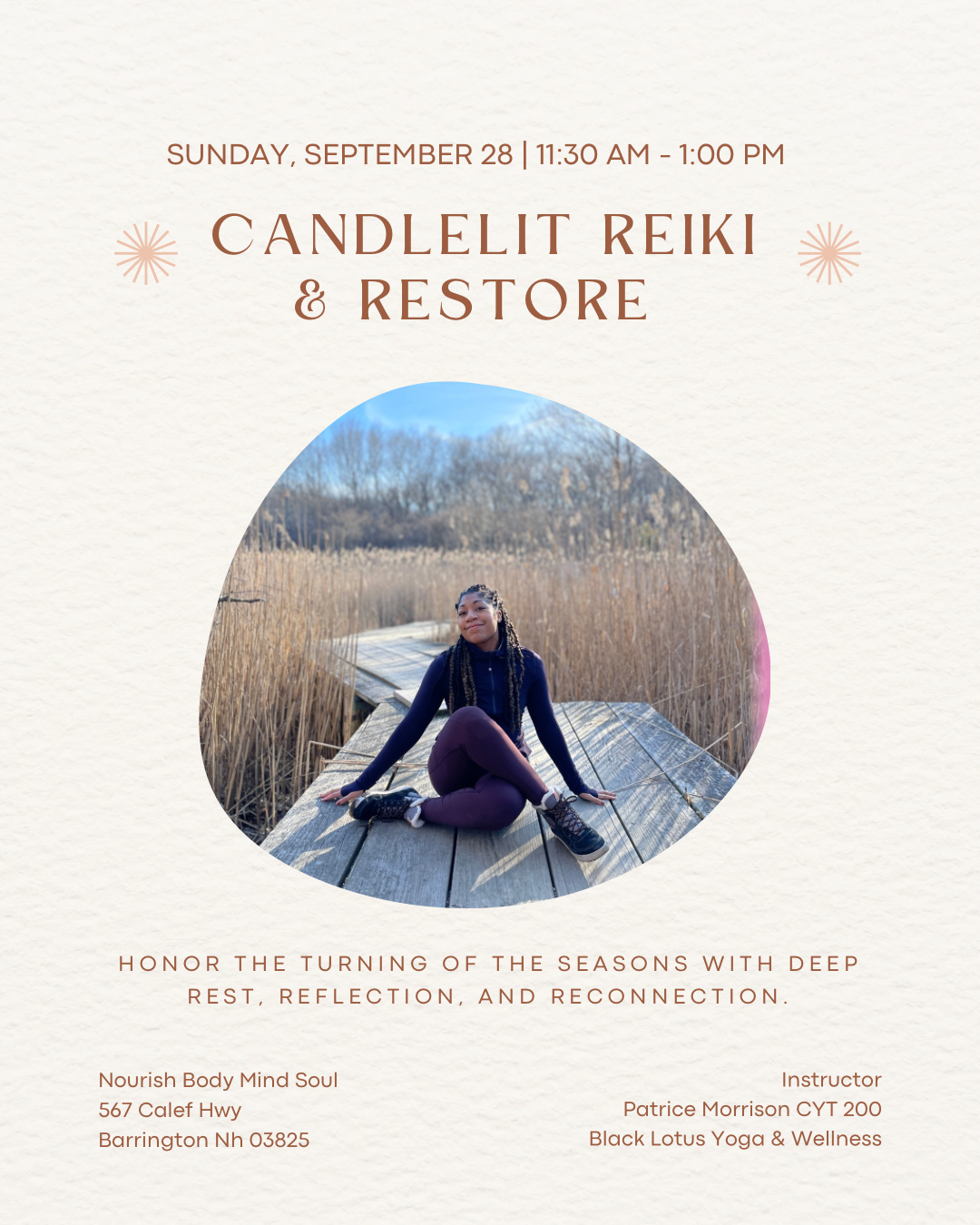 Nourish Body Mind Soul 567 Calef Hwy., Barrington, NH, United StatesJoin us for a 2-hour Sacred Body Wisdom Workshop to Anchor into your Soul's Truth, Embody your Power, and Reclaim your Sovereignty. You will receive Activations, Embodiment Practices & Teachings so you learn how to: * Move stagnant energy, suppressed emotions, and old trauma out of your body * Attune to the frequency of your […]
